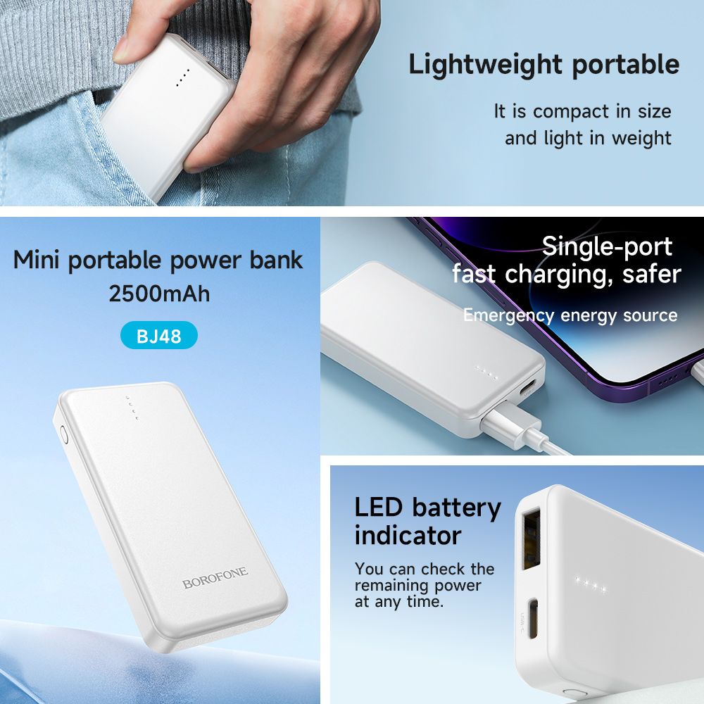 BOROFONE BJ48 Mini Portable 2500 mAh Power Bank - White