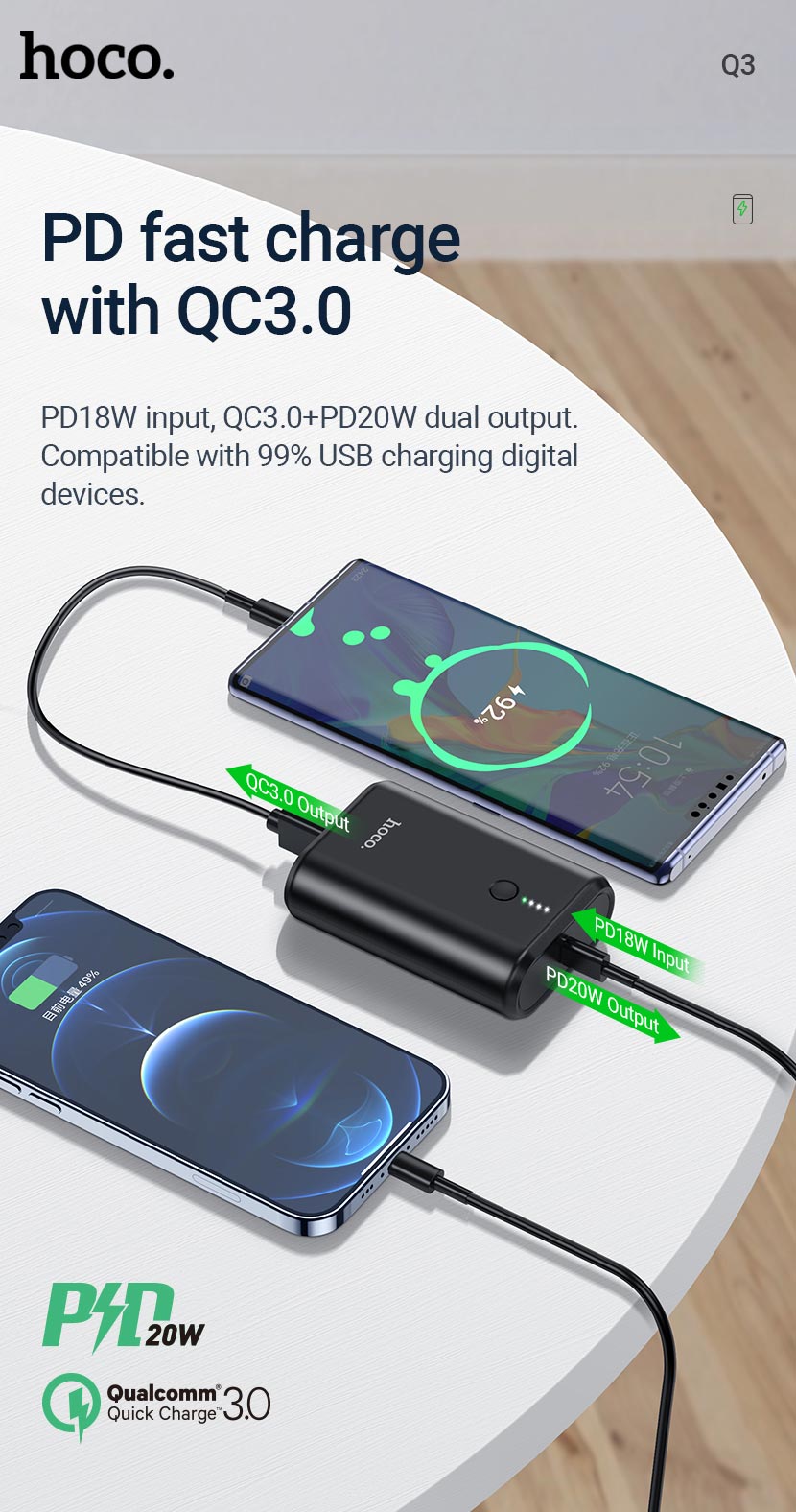 Hoco PD20W QC3.0 Fast Charging Mini Power Bank 10000mAh