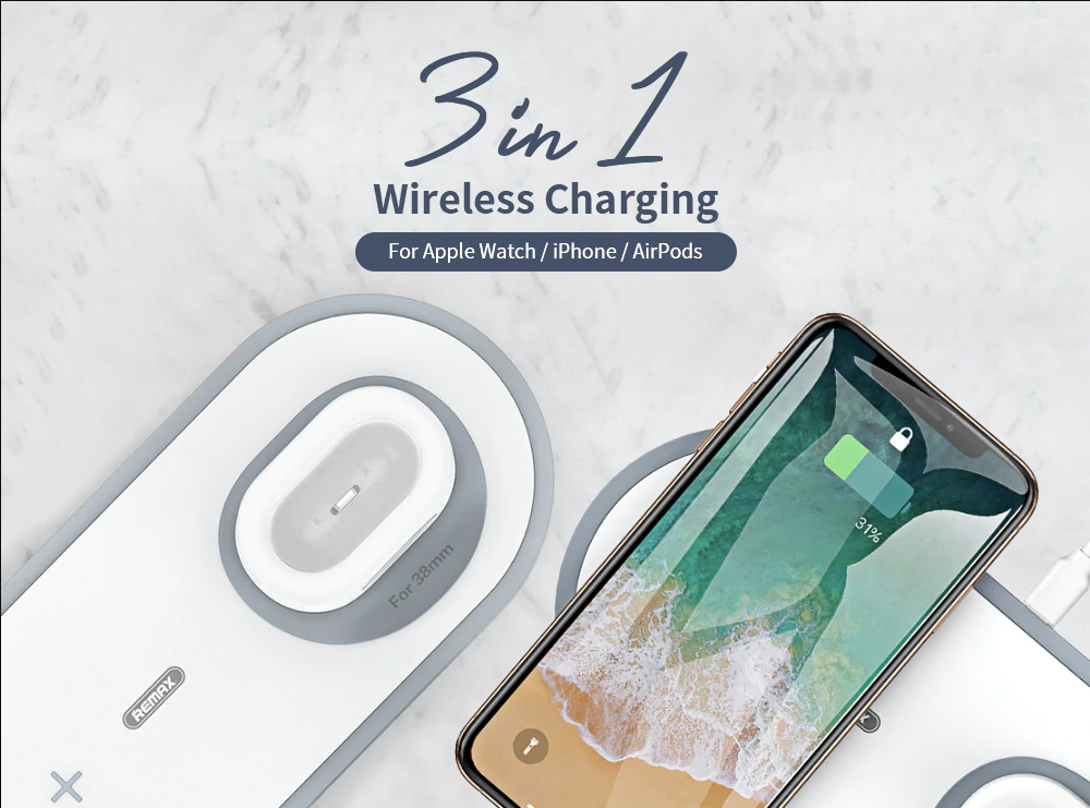 RP-W13 3 in 1 QI Fast Charging Wireless Charger Base For Apple LED Light Display